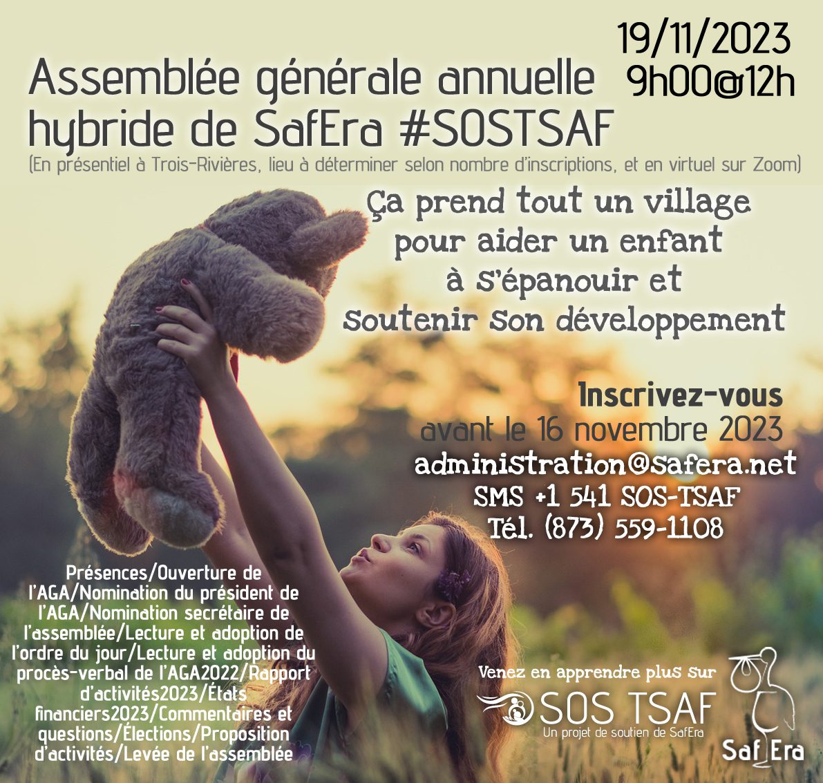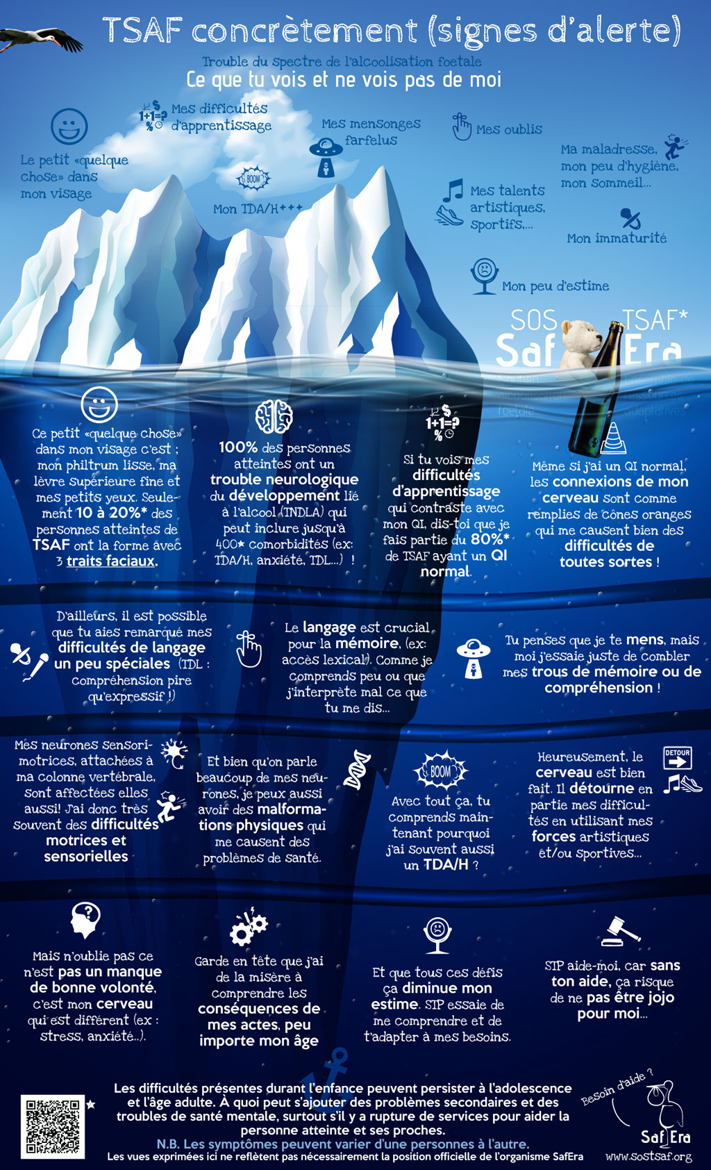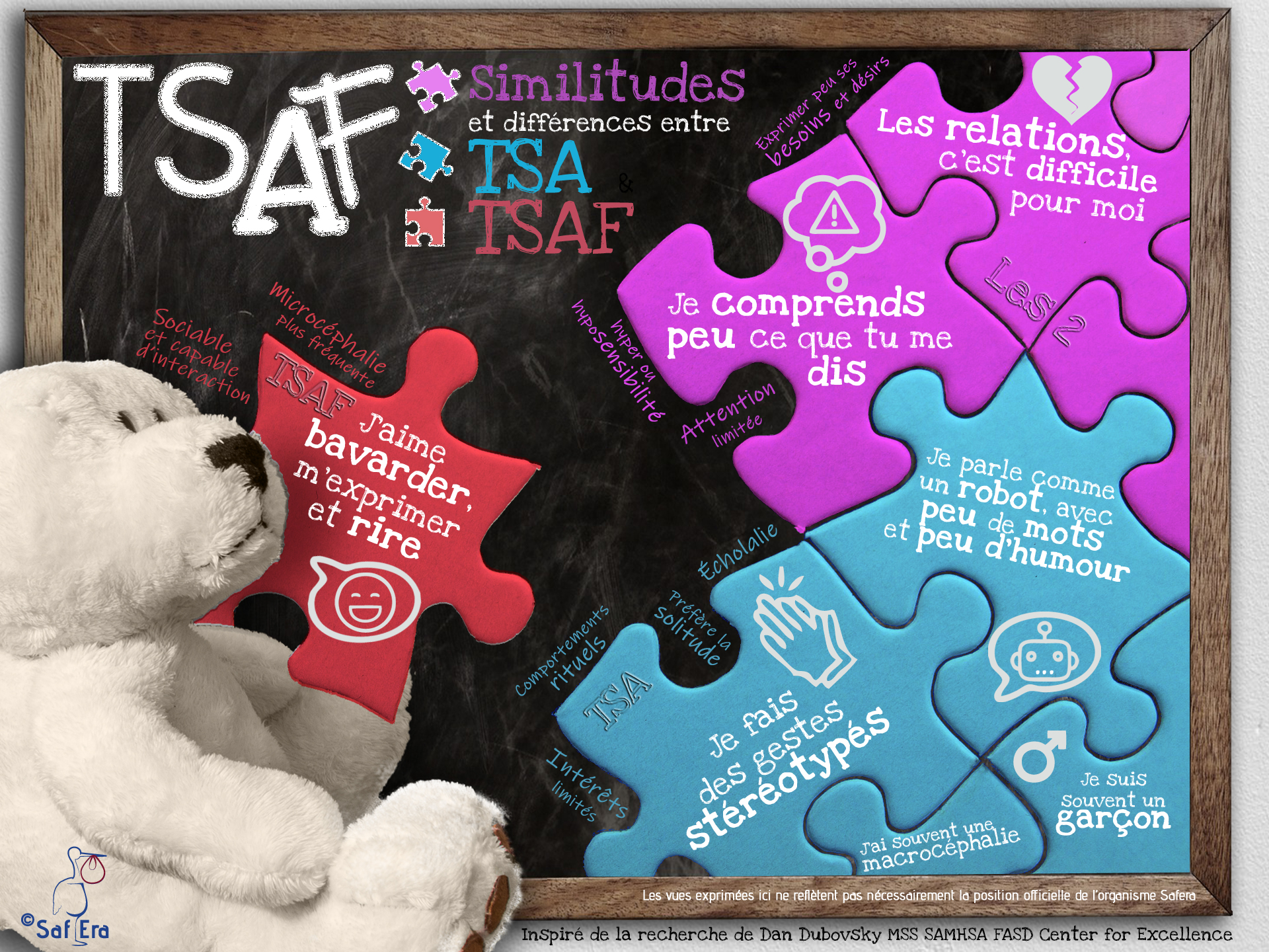 Soutenir SafEra SOS TSAF, c’est poser un geste essentiel pour une réalité encore trop souvent invisible.Le TSAF est un handicap neurologique permanent qui affecte le fonctionnement quotidien, les apprentissages, la santé mentale et l’intégration sociale. Sans compréhension adéquate et sans soutien adapté, les personnes touchées sont souvent confrontées à l’échec scolaire, à l’isolement, à la stigmatisation et à des parcours de vie marqués par des ruptures de services. Les proches aidants, quant à eux, portent une charge immense, souvent dans l’épuisement et le sentiment d’être seuls face à un système mal outillé. Pour en savoir plus, contactez-nous au 1 844 SOS TSAF