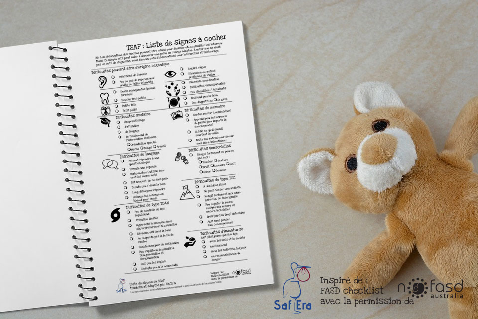 SafEra tient à remercier chaleureusement, pour sa collaboration et l'aide à la mise à jour des informations ici exposées, l'auteure de l’outil d’interventions 2022 : France Paradis, M.D., M.Sc, Médecin responsable du dossier Grossesse et alcool, DSPu de la Capitale-Nationale et Chercheure clinicienne au CRUJeF. Ainsi que ces collaborateur.trice.s : Association pour la santé publique du Québec [ASPQ] : Isabelle Létourneau, B. Com, Chargée du projet TSAF Sylvie Roy, Dt.P., M. Sc. Chargée de projets ; le CIUSSSCN ; GMF : Fabienne Saint-Cyr M.S.S., T.S. et Psychothérapeute ; DSPu : Michel Bernier, M.D. et Nadine Dubois, M.D. ; Louise Paradis, M.A., anthropologue médicale