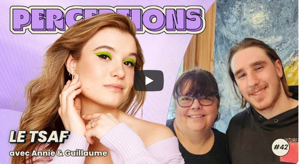 Vivre avec le TSAF : en savoir plusPerceptions Podcast #42. Le trouble du spectre de l'alcoolisation foetale avec Annie & GuillaumeDans cet épisode, nous parlons de ce qu'est le TSAF, des problèmes que ça peut amener, des risques reliés à la prise d'alcool durant la grossesse, des difficultés que Guillaume rencontre au quotidien et plus encore. C'est un épisode super enrichissant, je suis certaine que vous allez adorer Guillaume et Annie.Bonne écoute! Visionner sur Youtube 🔗 👇Clique ici |